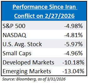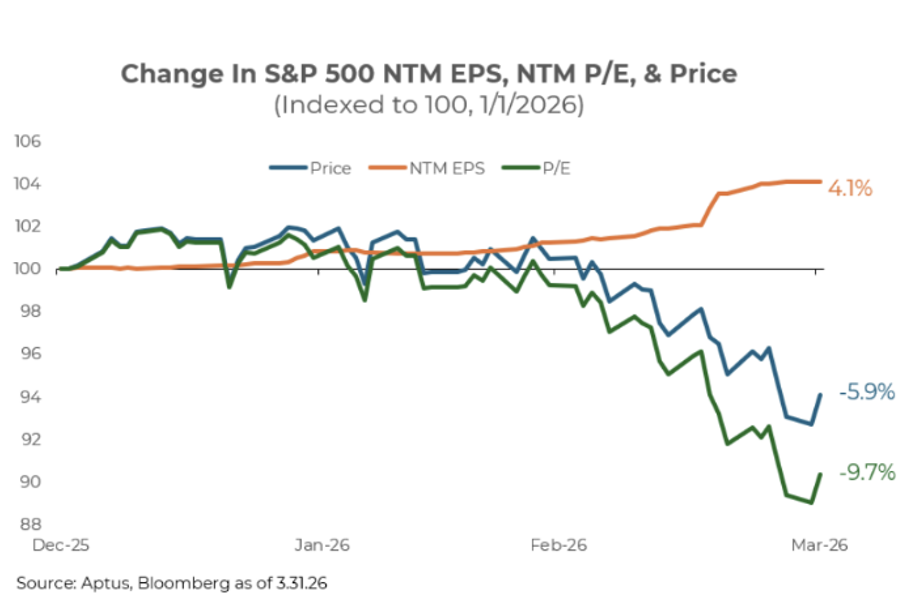 earnings expectations, AI-driven growth themes, and hopes for easier monetary policy, but sentiment deteriorated quickly after a January selloff tied to renewed tariff tensions and escalating conflict in the Middle East. By March, major U.S. indices had fallen into correction territory, with the S&P 500 down notably from its peak and the Nasdaq off more than 10%. Rising oil prices, inflation fears, and shifting rate expectations compounded the risk-off tone, even as corporate fundamentals remained relatively strong, with S&P 500 earnings still projected to grow in the low double-digits.
