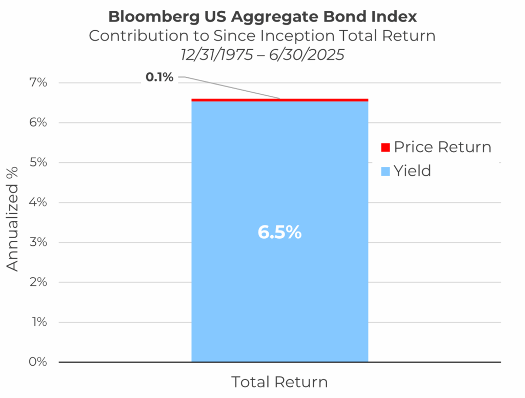 In fixed income, the opposite tends to be typically true as bond returns are overwhelmingly coupon-driven. A past study we performed showed that 99%+ of all returns from the Bloomberg Aggregate Bond Index since its 1976 inception were in the form of coupons. That happened whether in a mutual fund or an ETF.