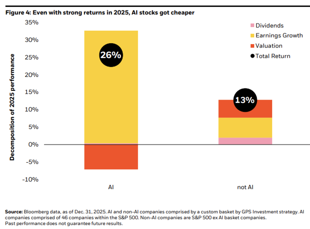 Brad: Speaking of the outsized impact of AI, the infrastructure phase is entering a new chapter. The growth in Capex from “hyperscalers” is finally moving lower from its extreme peaks. But don’t mistake slower growth for a lack of spending; the total base is now so high that even lower growth rates can have a large impact on the broader economy.