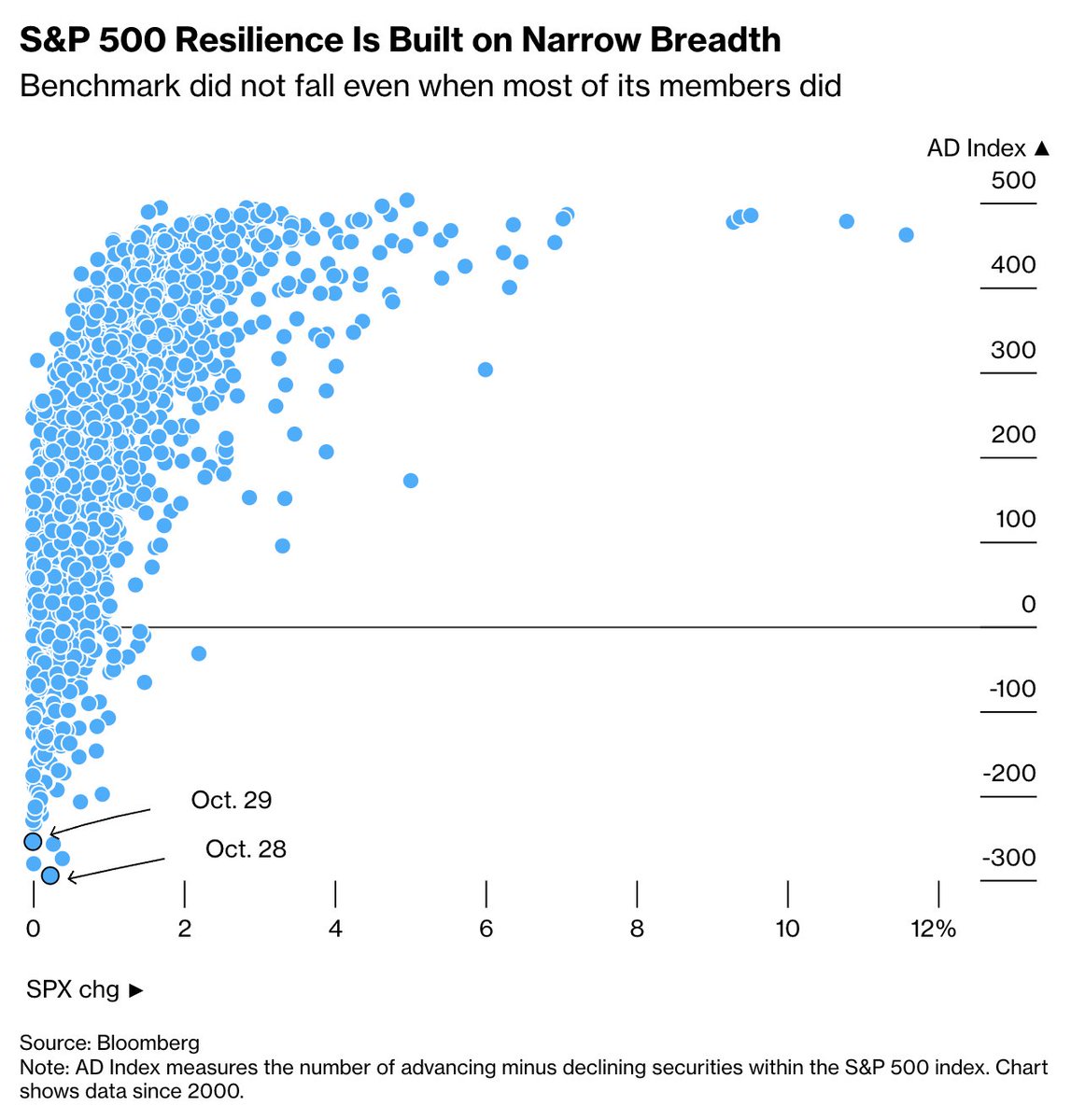 Jake: with some real outliers when it comes to the high number of stocks declining on recent flat days