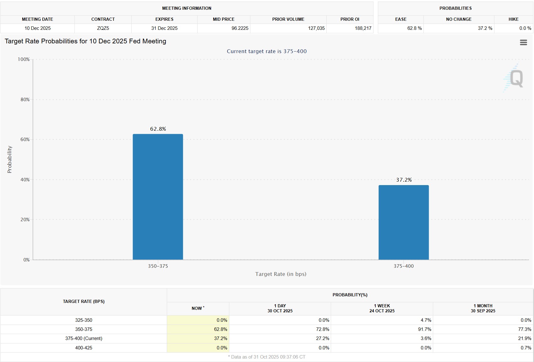 Source: CME Fed Watch as of 10.31.2025