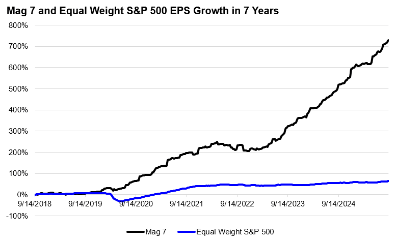 Brad: Speaking of two different worlds, dominance by megacap tech stocks has been supported by the dramatic edge in earnings growth